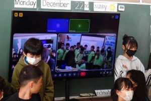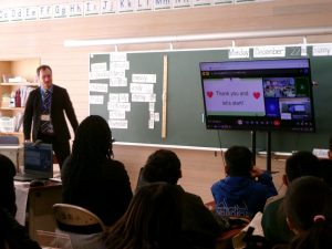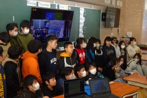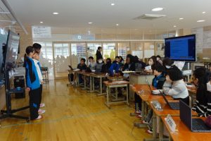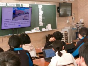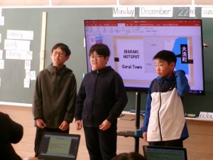 12月22日(火)に6年生が台湾の双園小学校とオンラインで英語交流をしました。鉾田南小学校ではALTの先生たちと協力をし、毎年実施しています。6年生は茨城県や鉾田市の魅力をPRするために、観光地や特産物などについて調べたことを英語で説明しました。双園小学校からは、一人一人が考えたお店について発表してもらいました。外国の同じ小学生と繋がったことで、気持ちも高まり、笑顔で交流することができました。