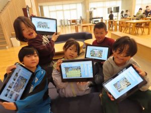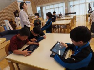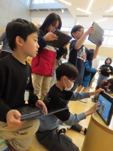 タブレットで写真を撮影し、分類していました。真剣!
