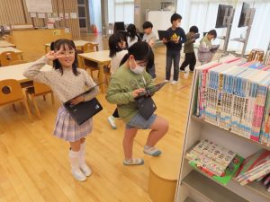 本日のメディアセンターには、何やら探究心をもった3年生の姿がありました。児童に聞くと図書の分類を調べているそう。