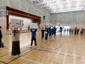 校長先生の三択クイズに挑戦中!役割を果たしながらも楽しむときは楽しむ!