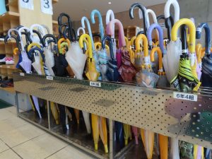 鉾田南小のみなさんは、かさに付いているひもでまとめてから、かさ立てに入れています。このひと手間で、傘同士が絡まるのを防ぎ、出し入れがスムーズです。