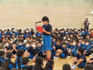 校長先生が「1年生はたのしいですか~」と聞くと