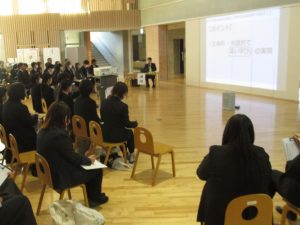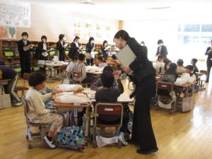 11月14日(金)に茨城県生活科・総合的な学習の時間教育研究部県東ブロック授業研究会が開催されました。本研究会は低学年における生活科と中高学年における総合的な学習の時間の授業力向上を目指して県東地区内で実施されています。本年度は鉾田南小学校を会場に行われました。授業者は1年1組長者久奈々先生、4年1組猪股克成先生、6年1組堀田伸子先生の3名でした。県東地区内の各学校の先生方が大勢集まる中、3名の先生方も授業を受けた子供たちもそれぞれの課題に向かって熱心に学習を進めていました。