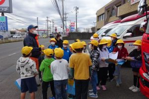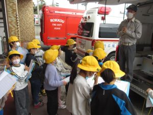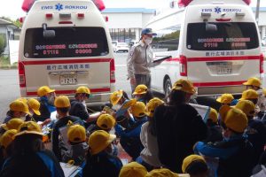 11月18日(火)3年生の社会科見学があり鉾田消防署に見学に行きました。実際に稼働する消防車や救急車を目の当たりにし、興味津々に署の方の話を聞いていました。また、消防車や救急車に乗ったり、防火服を着たりし、実感をともないながら学習を進めることができました。みな、メモをとりながら熱心にまなんでいました。