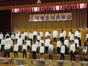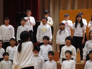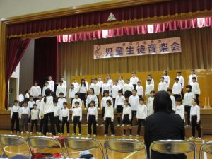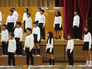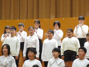 11月19日(水)鉾田市教育会児童生徒音楽会が実施されました。鉾田南小学校からは4年生が合唱で参加しました。これまで音楽の時間や休み時間に積み重ねてきた練習の成果を十分発揮し、4年生らしく元気に堂々と発表をしてきました。リコーダーや打楽器を入れたり、呼びかけや振り付けなど入れたりと工夫をし、見る人を楽しませるとてもよい合唱ができました。
