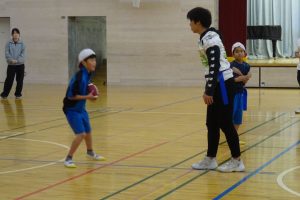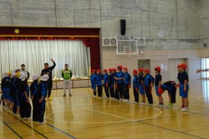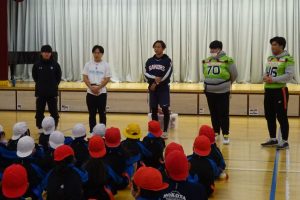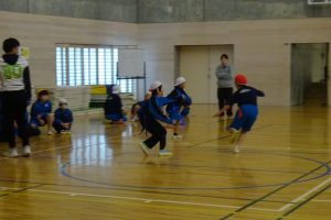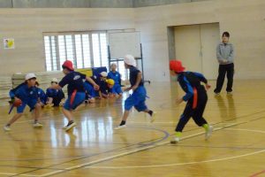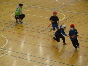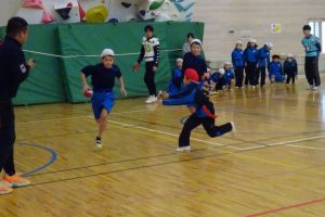 11月25日(火)に4年1組と2組が、26日(水)に4年3組と4組がフラッグフットボールの出前授業を受けました。茨城セイバーズのみなさん、筑波大学アメリカンフットボール部のみなさん、市生涯学習課のみなさんのご協力で実施しました。オリンピック種目となったフラッグフットボールについて、ルールや動き方、戦術など、その特性を伝えてもらうとともにフラッグフットボールの楽しさにもふれ、4年生は興味と意欲をもって、臨んでいました。