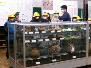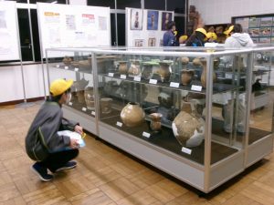 2月17日(火)に6年生が校外学習で「とくしゅくの杜」へ行きました。市内や県内で発掘された品々を見ながら、大昔の生活の様子や物流などについて、職員の方から詳しく説明を受けました。海に近いこの地域は塩がとれるため、遠方の貴重な物品と交換することができ、そういった発掘品が多く出土されているなど、地域と絡めた歴史を学ぶことができました。初めて知ることが多く、6年生は興味をもって熱心に耳を傾けていました。