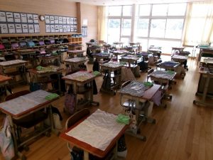 本日の4校時、3年生が体育に向かったあと、教室をのぞいたら、いすを中に入れて、教室が整っていました。また、一人一人が、お手ふきやランチョンマットなど給食の準備もしてありました。すてきな教室でした!