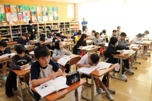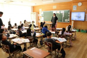 本日6校時に3年1組の北見先生が授業公開を行いました。国語科の「三年とうげ」という単元で、自分が選んだ民話や昔話を紹介するというものでした。子どもたちは、自分が選んだ本の理由をもとに友達に紹介をしていました。