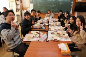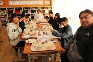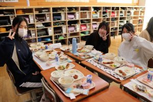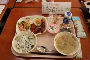 本日、6年生はお楽しみ給食でした。栄養を考えたたくさんのおかずやデザートがあり、子どもたちも大喜びでした。職員も教室に招待され、一緒に会食をしました。とても楽しい時間でした。