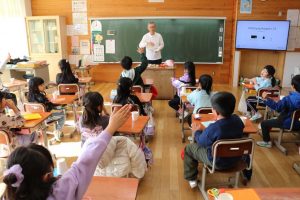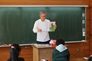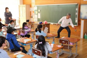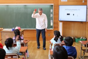 本日、1年生を対象に、「コマ名人の川波さん」による読み聞かせがありました。川波さんは「けん玉名人」でもあり、その技のすごさにみんな感動していました。読み聞かせもよく聞いていました。