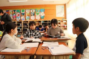本日、1年1組の市毛先生が授業公開を行いました。国語科のじどう車しらべの単元で、3つの例はどんな順番になっているかを考える内容でした。子どもたちは自分の考えをもとに友達と話し合い、たくさん発表していました。