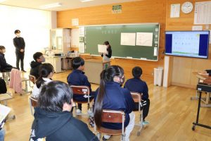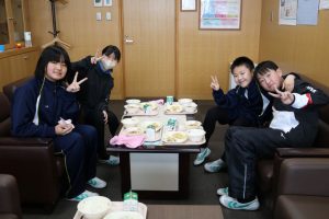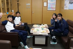 本日、校長室給食を実施しました。今日は6年1組2班のみなさんが来室しました。中学校での部活動についてや統合前の小学校での思い出など、たくさん話してくれました。楽しい時間を過ごすことができました。
