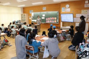 本日、3年2組の児童が、とくしゅくの杜に校外学習に行ってきました。私たちの祖先の生活のようすや使った道具などの説明を聞いたり、実際に触ったりしました。楽しみながら学習することができました。