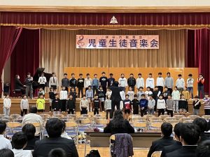 本日、鉾田北中学校体育館で令和7年度鉾田市教育会児童生徒音楽会が開催されました。市内各小中学校と鉾田一高附属中学校が参加しました。本校からは、4年生が参加し「楽しいマーチ」と「世界を旅する音楽室」の合唱を披露しました。みんなで気持ちのこもった歌を一生懸命に歌うことができました。