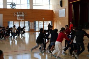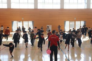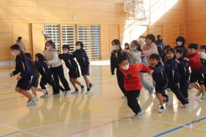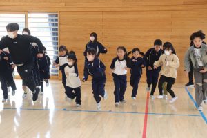 昨日、1・5年生が昼休みに姿勢教室を実施しました。講師の小見先生の合図に注意しながら、走ったり・止まったりしながらゴールを目指しました。最後はチームで協力して、だるまさんが転んだをしました。