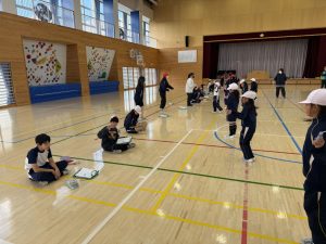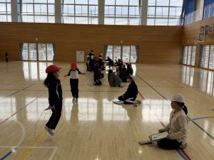5時間目の体育の授業で、1年生と6年生が合同で体育を行いました。準備運動を6年生の支持のもと元気よく行い、その後、1年生が縄跳びを跳ぶ回数を6年生が数えてあげていました。6年生は、1年生に優しく声をかけてあげ、1年生はいつもよりも一生懸命に縄跳びに取り組んでいました。