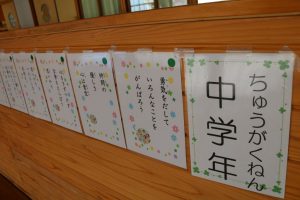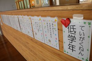 みんなの広場には、人権標語コンクールの作品が掲示されています。どの作品も素晴らしい作品で、人権を大切にしようとする気持ちが伝わってきます。本校では、「さん呼名」を推進しています。ひとりひとりの人権を大切にするためです。相手を思いやる気持ちを育て、人権を大切にする子どもになってほしいと思います。