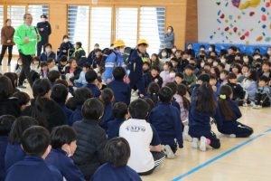 本日、不審者対応の避難訓練を実施しました。鉾田警察署生活安全課の高橋さん、大蔵駐在所の生井さん、スクールサポーターの角田さんにご協力いただき、不審者が学校に侵入してきた時の対応の仕方や、登下校時に不審者に遭遇した時の対応の仕方を教えていただきました。本校でも、普段から門扉を閉めたり、昇降口の扉を閉めたりして、不審者が侵入しないようにしています。