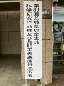 9月27日(土)~28日(日)に行方市のレイクエコーにおいて、第69回茨城県児童生徒科学研究作品展および発明工夫展鹿行地区展が開催されました。本校からは6年生の小沼さん・安重さんの作品が出展されました。2人の研究は、鹿行地区展においても金賞を受賞したので、次は県展に出展されます。