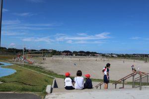 日中も大分涼しくなり、急に秋っぽくなってきました。昼休みには、校庭で元気に遊ぶ子どもたちの姿がありました。