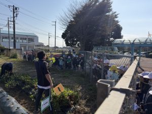 2時間目に、5月につばさ幼稚園の畑に本校の1年生と幼稚園児で植えた芋の苗の周りの草抜きを行いました。