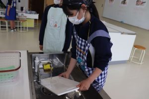 はじめての調理実習。ほうれん草のゆで方を学習しました。どの子供たちも一生懸命取り組むことができました。