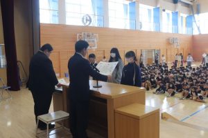 未分類 前期終業式 2025年10月10日 admin 本日、前期の終業式を行いました。鉾田市は、今年度から2学期制になったことにより、今日が前期の最終日になりました。式に先立ち、みんなにすすめたい1冊の本推進事業や読書感想文の表彰伝達を行いました。 また、前期を振り返っての作文発表では、1年生の飯島さん、3年生の飯島さん、5年生の小沼さんが代表で発表しました。素晴らしい発表でした。 校長先生からは、「今年になってみなさんたくさん成長しましたね。後期もさらに成長することを楽しみにしています。」と話がありました。