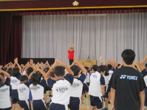 未分類 姿勢教室 2023年9月20日 admin 今日の昼休みに、小見先生による姿勢教室をおこないました。初めて、全校児童が体育館に集まり、実施することができました。今まではZoomによる「オンライン姿勢教室」でしたが、実際に目の前で指導してもらうことで、子供たちも真似をしながら正しい姿勢や体幹を学ぶことができました。
