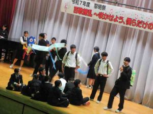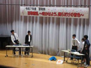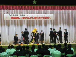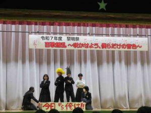 本日は、令和7年度黎明祭が行われ、生徒たちは、合唱や有志の発表に全力で取り組み、練習の成果を発揮していました。
