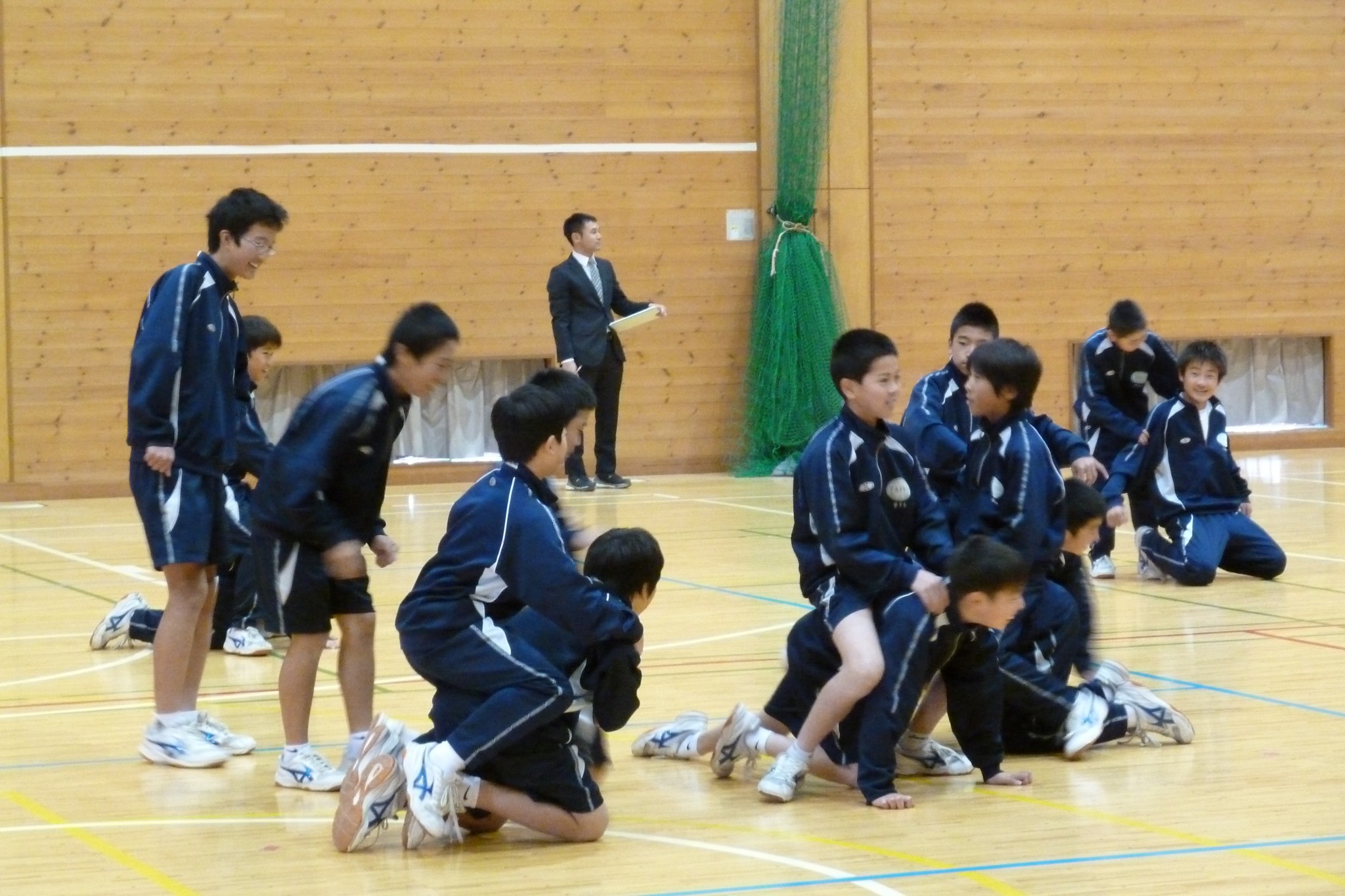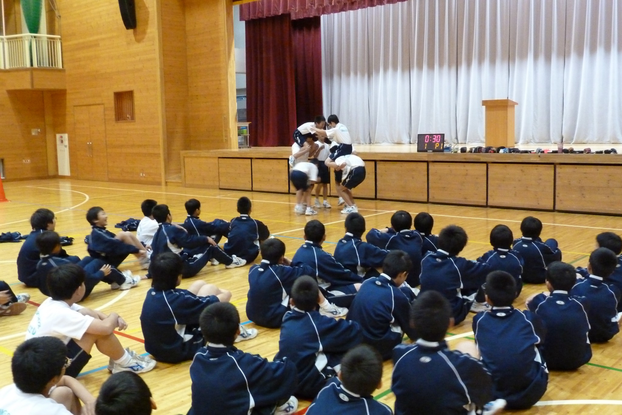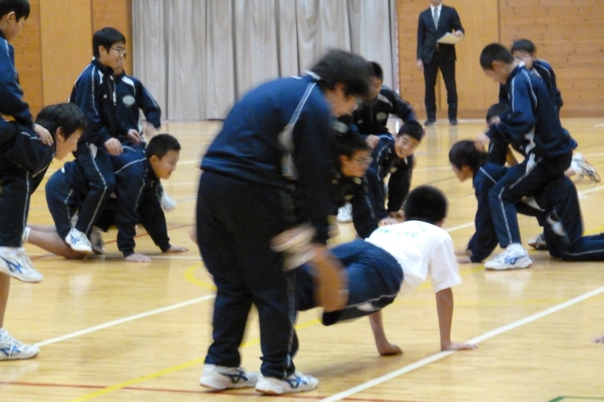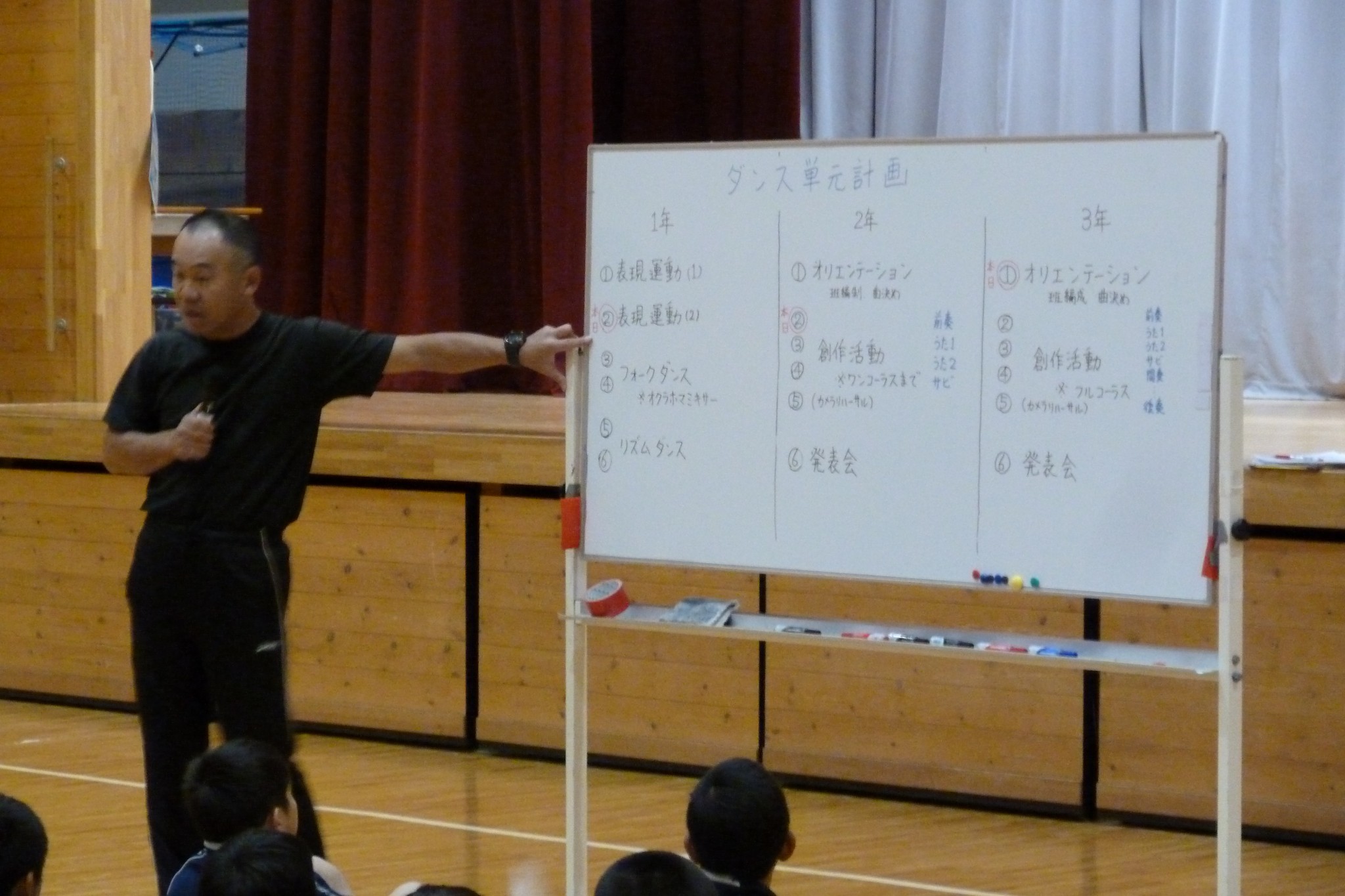 第1学年 12/13 体育の授業の様子(表現運動) 2016年12月13日 大洋中学校 3校時,1年生の学年体育で表現運動の研究授業を行いました。「集団で課題に合った動きをしよう。」という課題で,学習しました。2人組,4人組,8人組とだんだん人数を増やしていき,それぞれ決められた課題を自分達で考えて,表現していました。楽しそうに活動していました