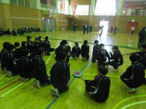 本日は、生徒会主催による「3年生を送る会」が開かれ、子どもたちは楽しくドッチビーを行い、交流を深めていました。