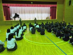 今年度も鉾田市芸術文化創造事業として、COCORO⋆COさんのゴスペルコンサートを開催しました。生徒たちは演奏に合わせて手拍子や体を動かすなど見て聴いて楽しむことができました。