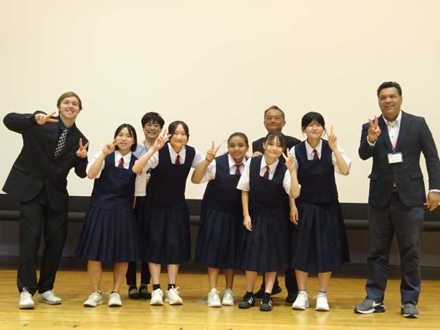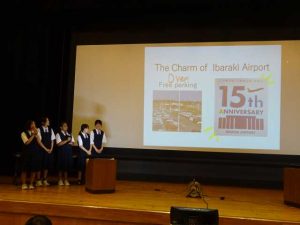 その他 7/11 英語プレゼンテーションフォーラム鉾田市大会 2025年7月13日 大洋中学校 本日、5名の生徒が市の英語プレゼンテーションフォーラムに出場しました。茨城空港の可能性に注目し、空港があるのに利用者が少なく他県に行くための通過点になっている。もっと活気のある場所にできたら、茨城の魅力アップにつながるのではないかと考え、イベントの充実、多文化交流、外国人の活躍の場などを英語で伝えました。