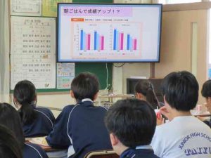 本日は、食育訪問授業があり、生徒たちは食事の効果について考えを深めました。